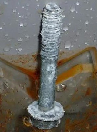 白銹是相對(duì)于紅銹命名的,紅銹是金屬基體腐蝕呈現(xiàn)的銹蝕產(chǎn)物,白銹則是鍍鋅鈍化層的腐蝕產(chǎn)物,也就是說(shuō)鋅腐蝕產(chǎn)生白銹,白銹的主要成分為氫氧化鋅。