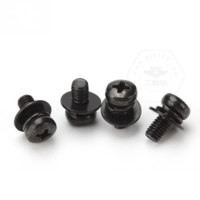 • 碳鋼4.8級黑色鋅鎳合金(48/360h)十字槽盤頭帶平彈墊組合螺釘GB9074.4N