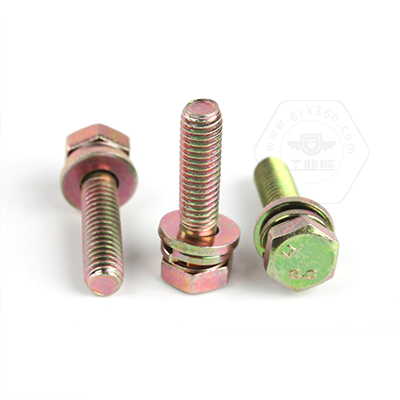 工業(yè)熊碳鋼8.8級(jí)彩鋅定制帶平彈墊六角頭螺栓(彈墊70#鋼,平墊Q235)定制D10127