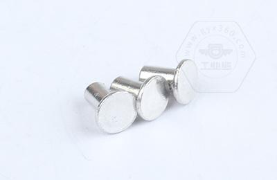 安裝時尾部空心部分受擠壓向外翻邊,形成卡扣,固定連接件。 扁圓頭半空心鉚釘主要用于金屬薄板或皮革、帆布、木料等非金屬材料的鉚接場合。